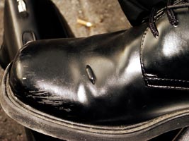 de rechterschoen van Bachir op een bepaald moment bleinen begon te ontwikkelen